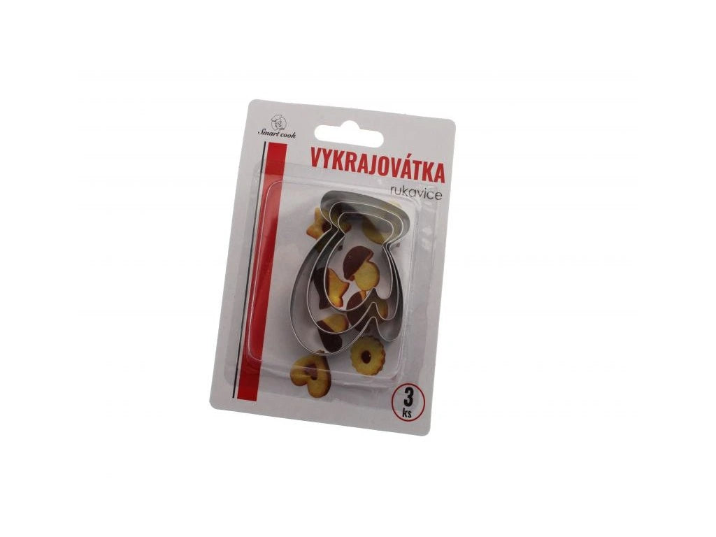 Sada vykrajovátek na cukroví ve tvaru rukavice. Vhodné pro sladké i slané těsto; různé velikosti (6,3 cm, 4,3 cm a 3,5 cm) umožní vytvářet variace. Nerezové formičky jsou odolné a snadno omyvatelné.