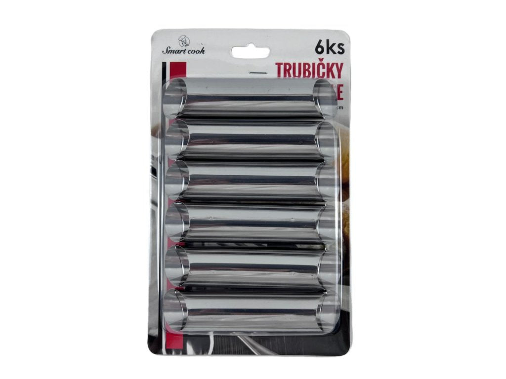 Praktická sada šesti zkosených trubiček na přípravu tradičních kremrolí a dalších plněných trubiček. Vyrobeno z nerezové oceli odolné vůči vysokým teplotám, ideální pro pečení v troubě i smažení. Šikmé hrany usnadňují tvarování a trubičky je nejlepší mýt ručně, aby vydržely roky.