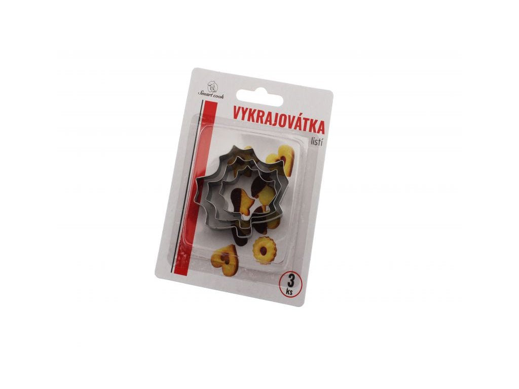 Sada vykrajovátek ve tvaru listů pro podzimní nebo přírodní motivy. Nerezový materiál zajistí dlouhou životnost a snadnou údržbu. Různé velikosti (5,5 cm, 4,5 cm a 3,5 cm) umožní tvořit pestré dezerty.